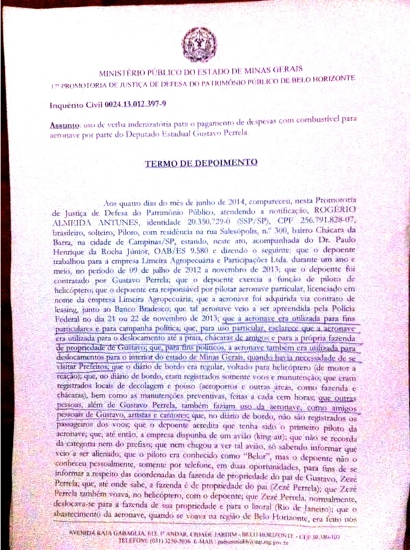 No rastro da apreensão de cocaína em Afonso Cláudio, o Ministério Público confirmou, numa inquérito civil público, que o combustível da aeronave foi pago pela Assembleia Legislativa, através de reembolsos solicitados pelo deputado Gustavo Perrella.